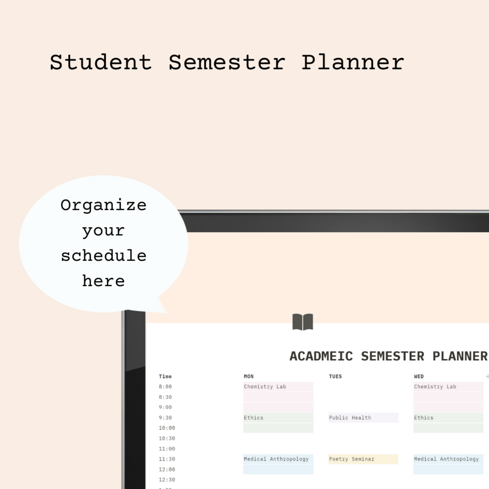 Student semester planner to keep you organized.